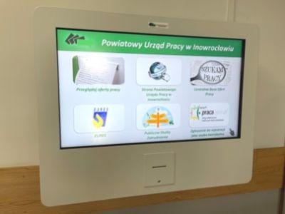 Oprócz wspomnianego nowego systemu kolejkowego na III piętrze w naszym urzędzie zainstalowane zostały infokioski i monitory.Na zainstalowanych na ścianach infokioskach można m.in. wyświetlić oferty pracy dostępne w Centalnej Bazie Ofert Pracy czy dokonać zgłoszenia do rejestracji jako osoba bezrobotna.